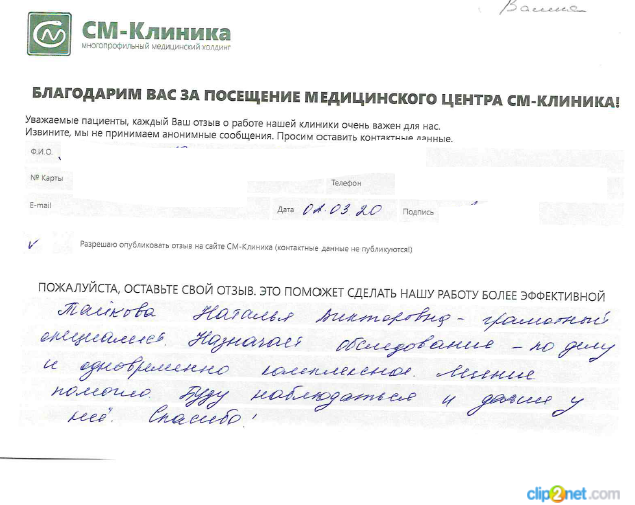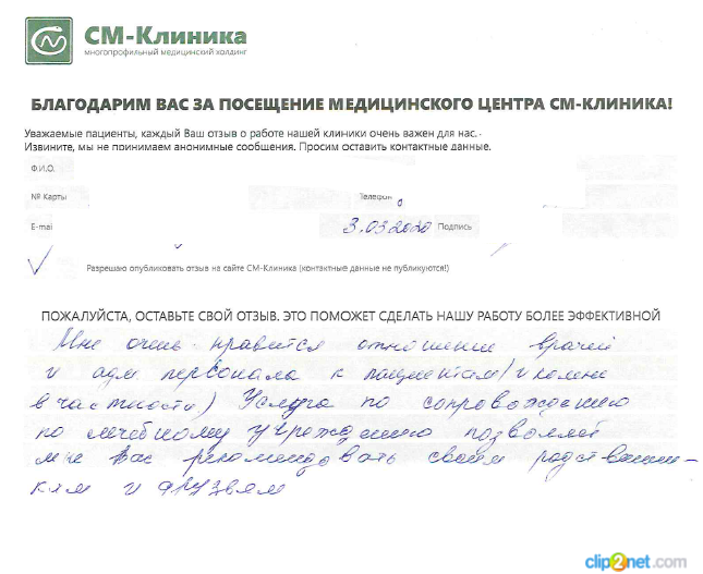 Мне очень нравится отношение врачей и адм. персонала к пациентам (и ко мне в частности). Услуга по сопровождению по лечебному учреждению позволяет мне вас рекомендовать своим родственникам и друзьям. Особенно хочется отметить Папину Светлану Сергеевну, по ее рекомендации я впервые посетила ваше мед. Учр-е. Спасибо вам за работу!!!